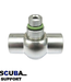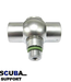 De Beaver 1st Stage 90-greeps LP-slang Dubbele T-adapter geeft je de mogelijkheid om één enkele poort in twee te veranderen, het verandert ook de hoek van je slangen om specifieke slangrouting mogelijk te maken voor stroomlijnings- en comfortdoeleinden, zoals bij het gebruik van twinsets of sidemount systemen.