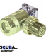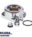 Apeks DST, technische verbinding - Verbeterde Apeks DST draaibare toren - Twee extra LP-poorten (standaard 4 nu 6) - Geoptimaliseerde slangroutering, niet alleen voor dubbele cilinders, bailout- of sidemountduikers Modelopstelling voor dubbele (twin-configuratie): Linkerkant: Rechte slangroutering van manometer en droogpak terwijl back-up tweede trap is aangesloten op axiale LP-poort. Rechterkant: Primaire tweede trap rechte routering terwijl inlator is aangesloten op axiale LP-poort. Bailout/Sidemount-voordelen: Parallelle slangroutering cilinder. Drie extra poorten voor eerste trap, inflator, swagelock, omniswivel.....