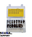Plastic multi compartment storage box containing 140 mixed Viton O-rings, for use with nitrox in 14 ..
