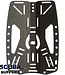 This Backplate 2.0 line forms the foundation of the new Hollis Rebreather harness system. This aluminum version weighs around 1 kg and is laser-cut from 6061-grade aluminum, then anodized in black.