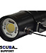With a 120° wide-angle beam and a chip output of 5600 lumens, it offers powerful illumination across a broad field. The light is powered by a 3x 18650 Lithium-Ion battery pack (33.3 Wh) and includes a charger. It weighs 518 g with battery, is 13.7 cm long, and has a runtime of 35–250 minutes, depending on the brightness level.