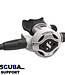 The air-balanced second stage provides optimal breathing comfort, with a reinforced technopolymer housing featuring a titanium insert, and a corrosion-resistant titanium air inlet tube that is strong and lightweight. The large S600 diaphragm in a compact housing responds immediately upon inhalation. Inhalation effort and VIVA (Venturi-Initiated Vacuum Assist) are adjustable via easily accessible controls.
