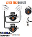 This Tecline regulator set features two V2 ICE first stages paired with two TEC2 second stages, ideal for twinset diving and cold water conditions. With DIR-style hose lengths and secure attachment hardware, it’s a robust and reliable configuration for technical divers.
